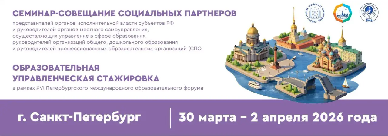Семинар-совещание социальных партнеров- представителей органов исполнительной власти субъектов РФ и руководителей органов местного самоуправления, осуществляющих управление в сфере образования, руководителей организаций общего, дошкольного образования и руководителей профессиональных образовательных организаций (СПО); образовательная управленческая стажировка (в рамках XVI Петербургского международного образовательного форума)