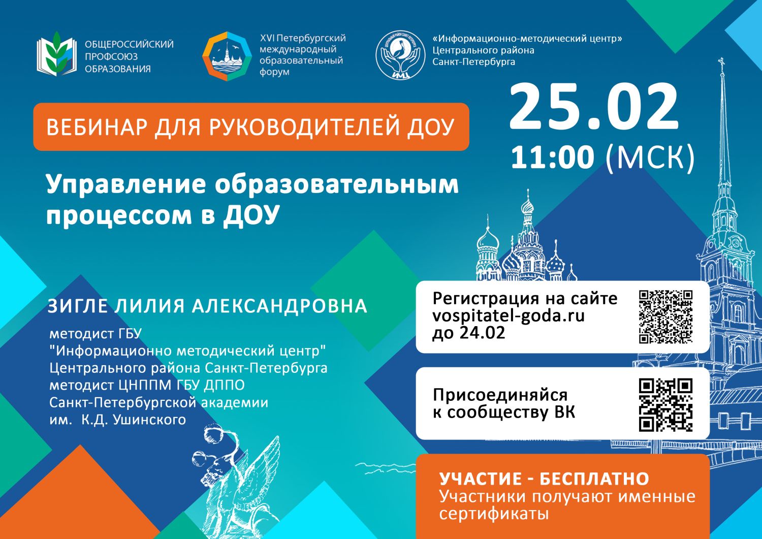 Семинар-совещание социальных партнеров- представителей органов исполнительной власти субъектов РФ и руководителей органов местного самоуправления, осуществляющих управление в сфере образования, руководителей организаций общего, дошкольного образования и руководителей профессиональных образовательных организаций (СПО); образовательная управленческая стажировка (в рамках XVI Петербургского международного образовательного форума) г. Санкт-Петербург
